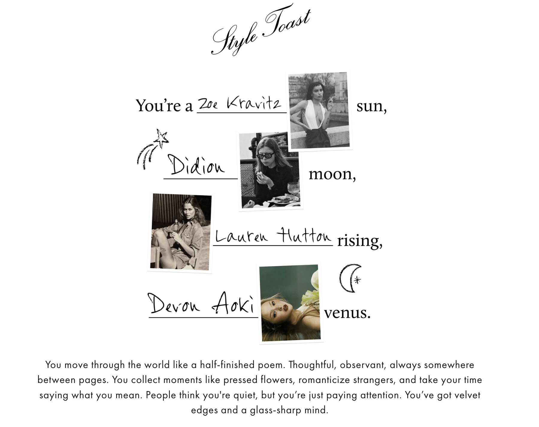 If you liked my musings on Gen Z, it girls, and Alexa Chung, here’s a quiz for you. Here’s what I got: